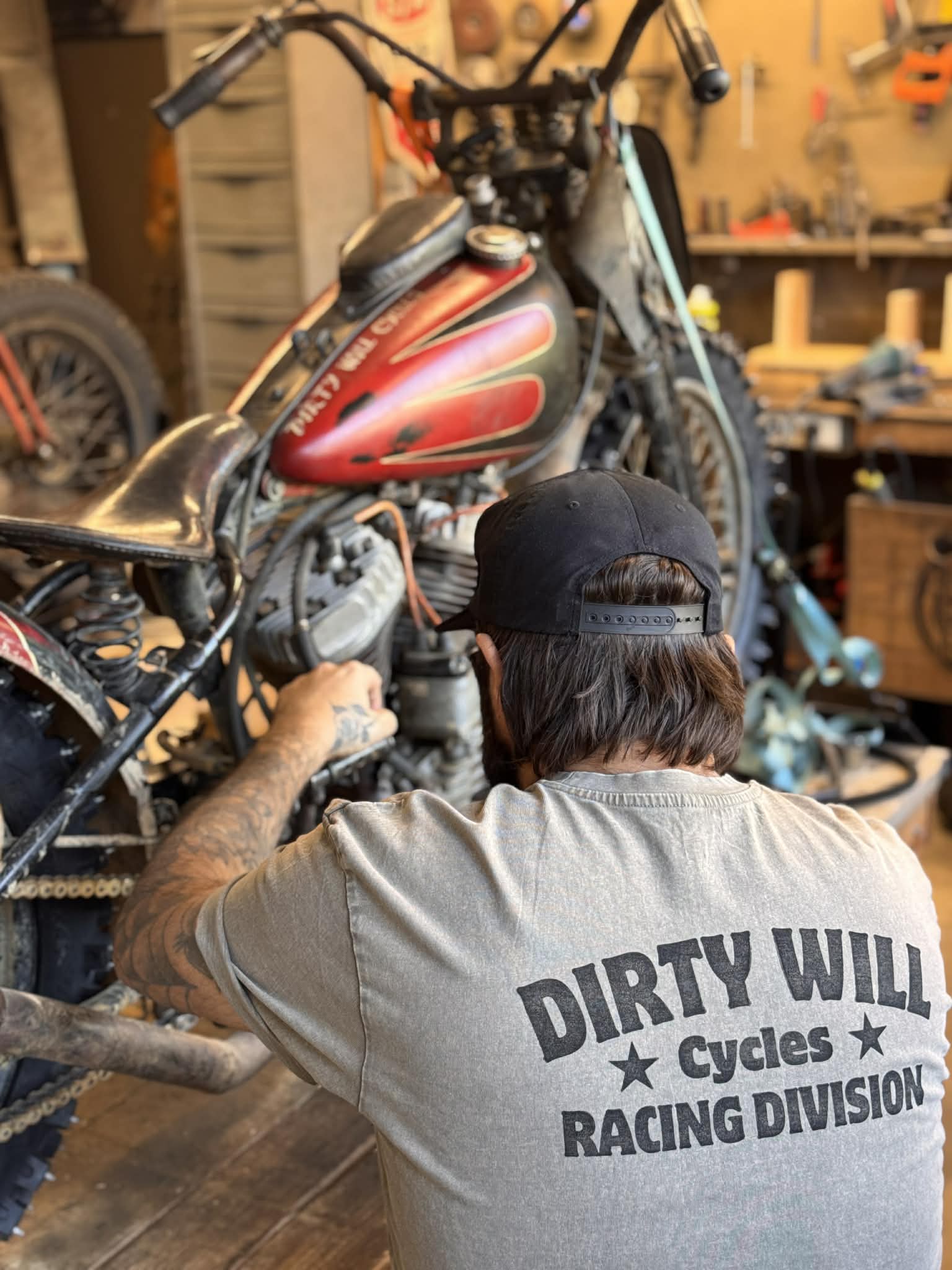 DIRTYWILLCYCLES logo principal, impression a la main au tampon